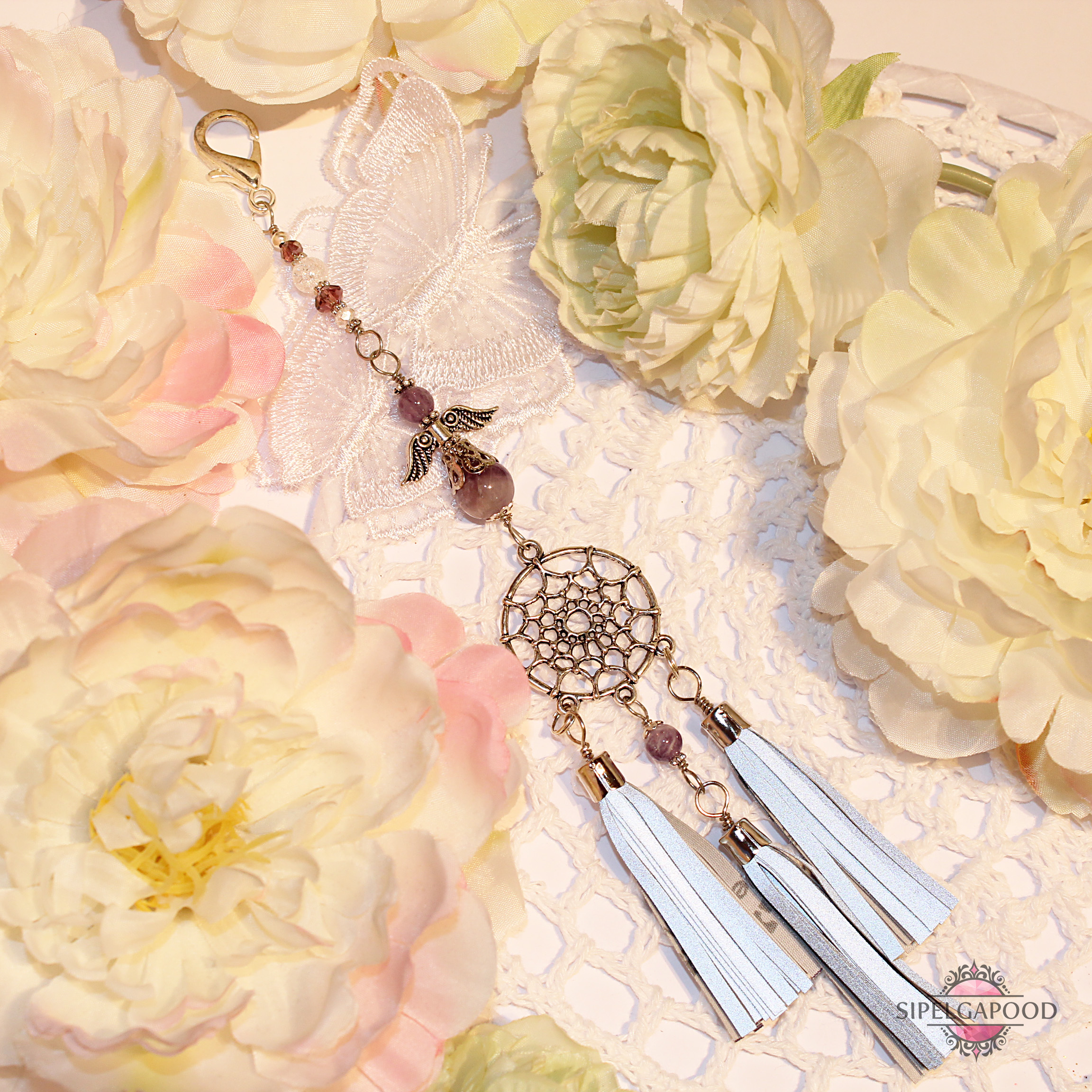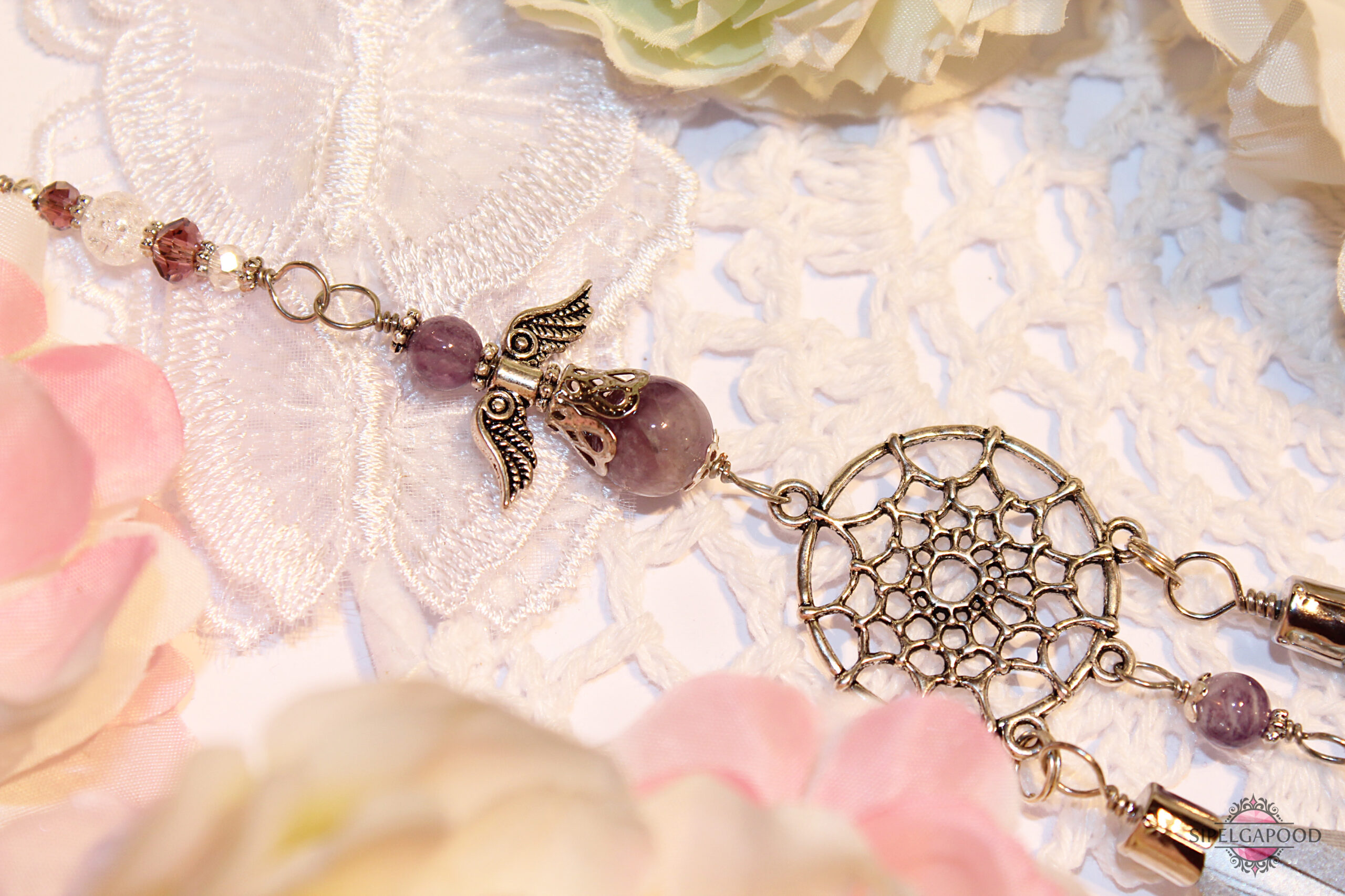Pikk poolvääriskivide, ingli ja unenäopüüdjaga helkur-ripats